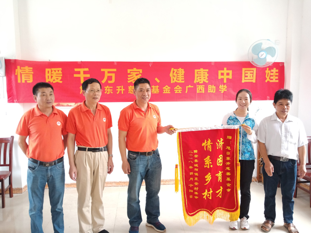 东安村村委会向旭日东升慈善基金会赠送了“济困育才,情系乡村”锦旗,对尊龙凯时集团旭日东升慈善基金会的善举表示真挚的感谢!▲东安村村委会赠送锦旗