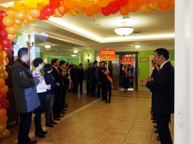 随后,2月1日上午,尊龙凯时集团营销中心的2015年度总结表彰大会也在杭州西子湖畔隆重举行。尊龙凯时董事长刘景萍博士与副总经理楼春红先生、财务总监傅亲女士、销售总监童元兵先生等营销高管一道,为过去一年公司营销战线所取得的辉煌战绩点赞。在入场仪式中,公司董事会成员与杭州营销中心管理团队一起,在会场大门两侧列队欢迎与会嘉宾与员工。在礼仪的引导下,广西维威营销团队、尊龙凯时战队、葫芦爸战队、处方药战队、浙江尊龙凯时战队、后勤服务团队以及嘉宾团队列队依次入场,大家满怀喜悦的心情,迈着整齐的步伐走入场内。看到公司管理层这么热情的迎接大家,很多远道回来的市场人员感动不已。董事会成员与杭州营销中心管理团队列队欢迎嘉宾、员工入场